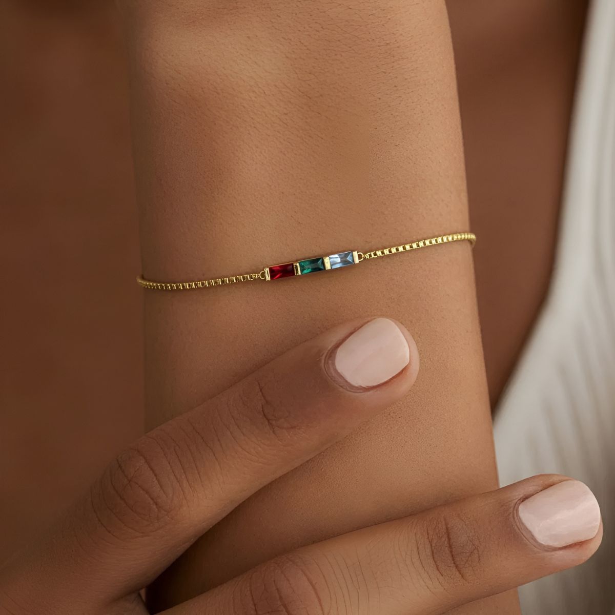This is more than a bracelet, it’s a personal tribute to the people you love, a meaningful everyday sparkle, and a timeless piece designed just for you. The Aurielle™ | Baguette Birthstone Bracelet is created to hold up to five birthstones, each representing someone who holds a special place in your heart. Whether it’s your children, grandchildren, or a milestone month, this bracelet transforms your story into something you can wear; softly, elegantly, every day.